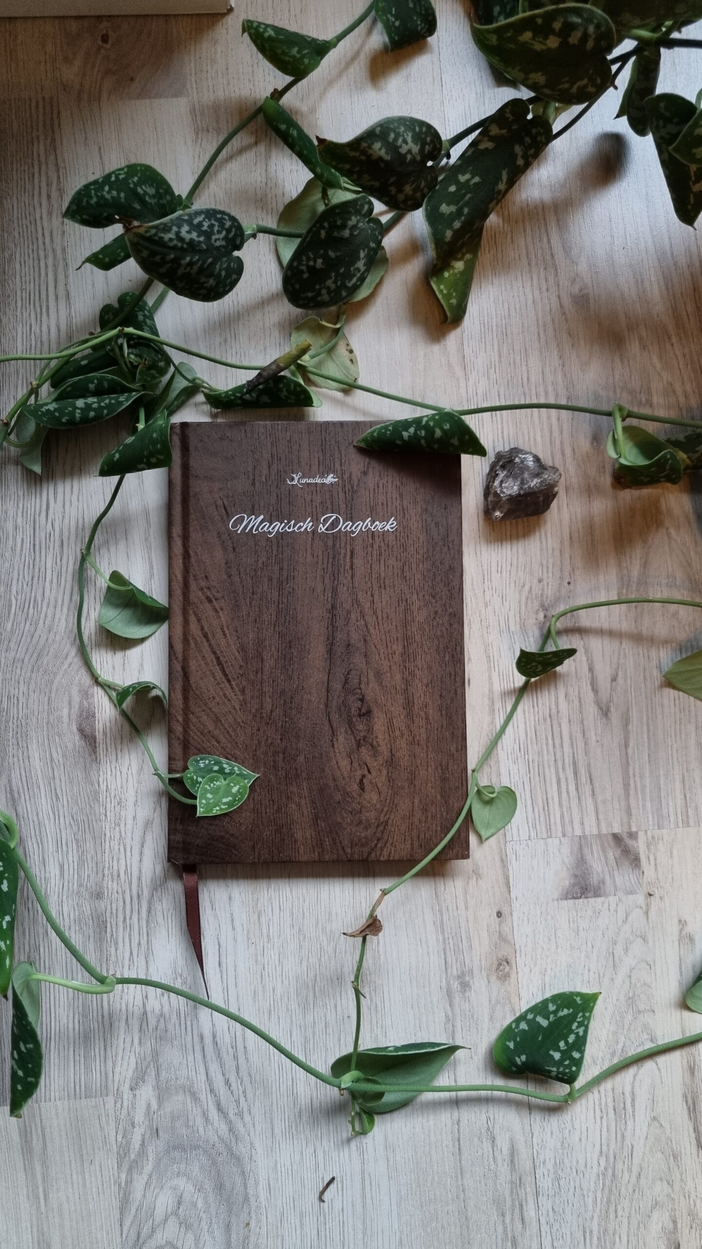 Magisch dagboek, met mooie stevige, hout-look kaft, om alle inzichten en ontwikkelingen op jouw heksenpad in te noteren. Het satijnlint helpt je om in één beweging je dagboek te openen op de pagina waar je gebleven was.