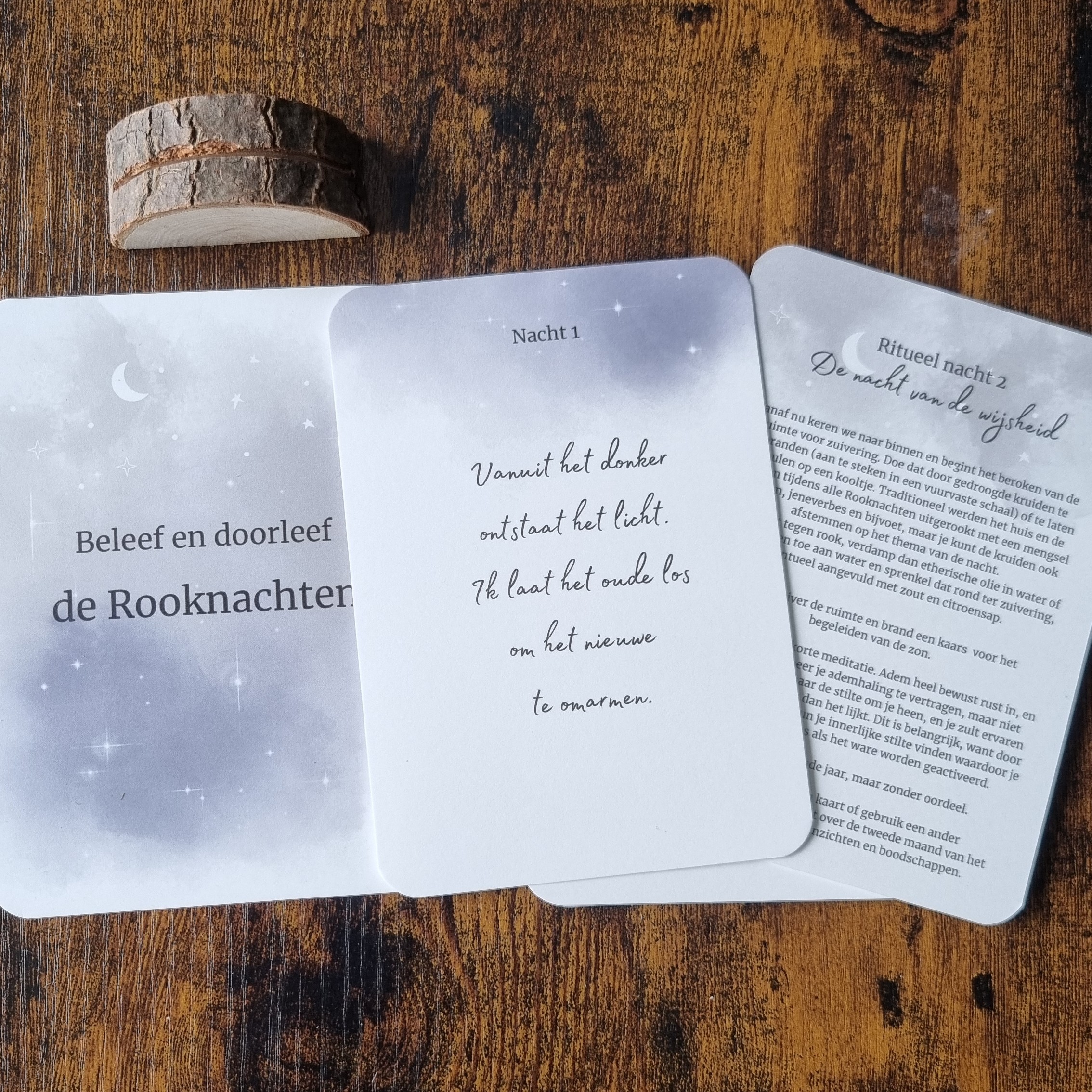 - Rooknachten kaartenset in zakje, bestaande uit 12 kaarten met voor iedere Rooknacht een ritueel en een quote