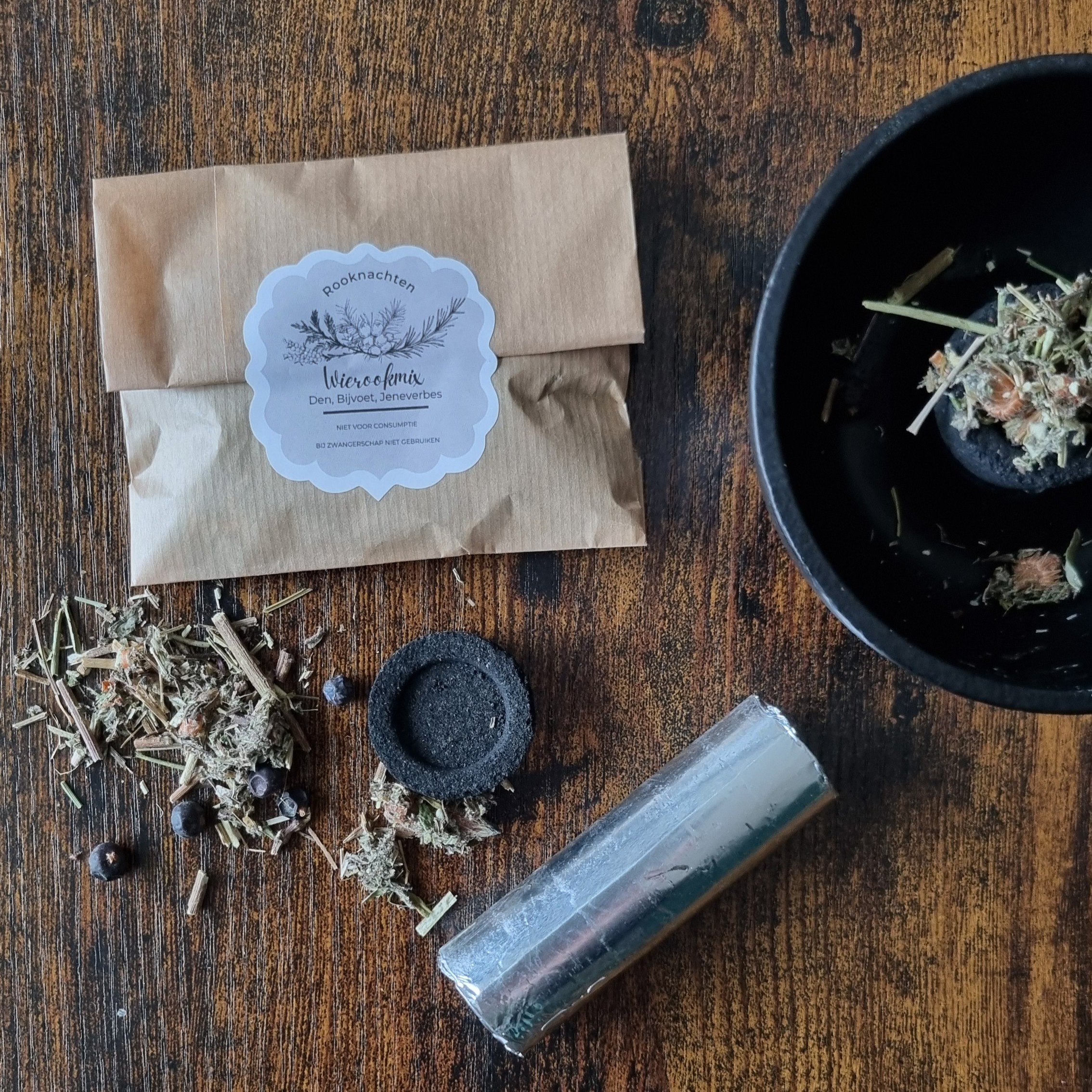 - Rooknachten-wierookkruiden + een rolletje kooltjes
